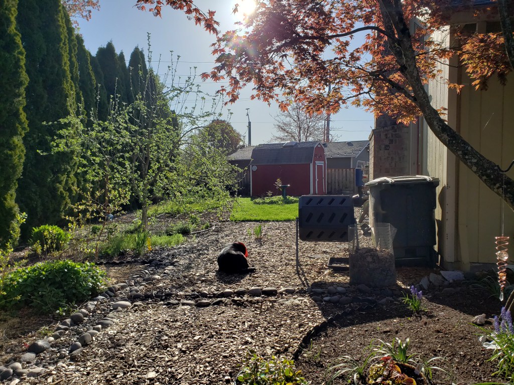 Seedlings that are just emerging e.g., carrots, beets, lettuce greens are at their tenderest. They need protection from drying out and direct sun. I will be doing a shallow watering this morning and early afternoon (since the roots are no deeper than an inch). For the lettuce greens and carrot seedlings I’m going to set up afternoon shade. I also have some broccoli transplants that will want afternoon shade and water too.