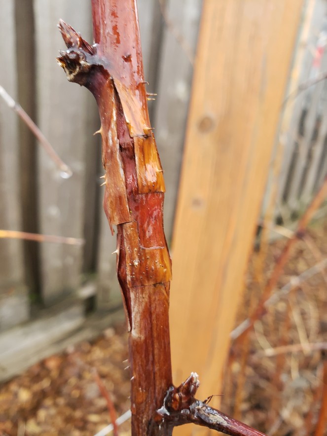 • First remove any very old, damaged, pest infested or diseased, or dead canes.