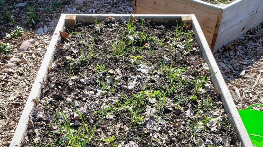 I remove all the mulch and debris from my garden beds. I winterize with old leaves, crop residues, and a little finished compost. Whatever hasn’t fully been processed by bugs, slugs, and worms gets pulled off and added to the composters. This leaves my soil bare (gasp!) and exposed to sunlight and wind that helps to dry the top of the soil. If I had access to chickens and a tractor cage, I would begin the process now.