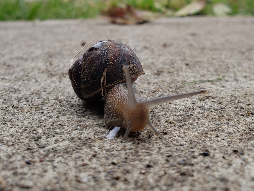 These cute little guys hitch-hiked from the old country and have naturalized themselves here. They have a large, upright shell that looks faded. They are generally bigger than our native snails.