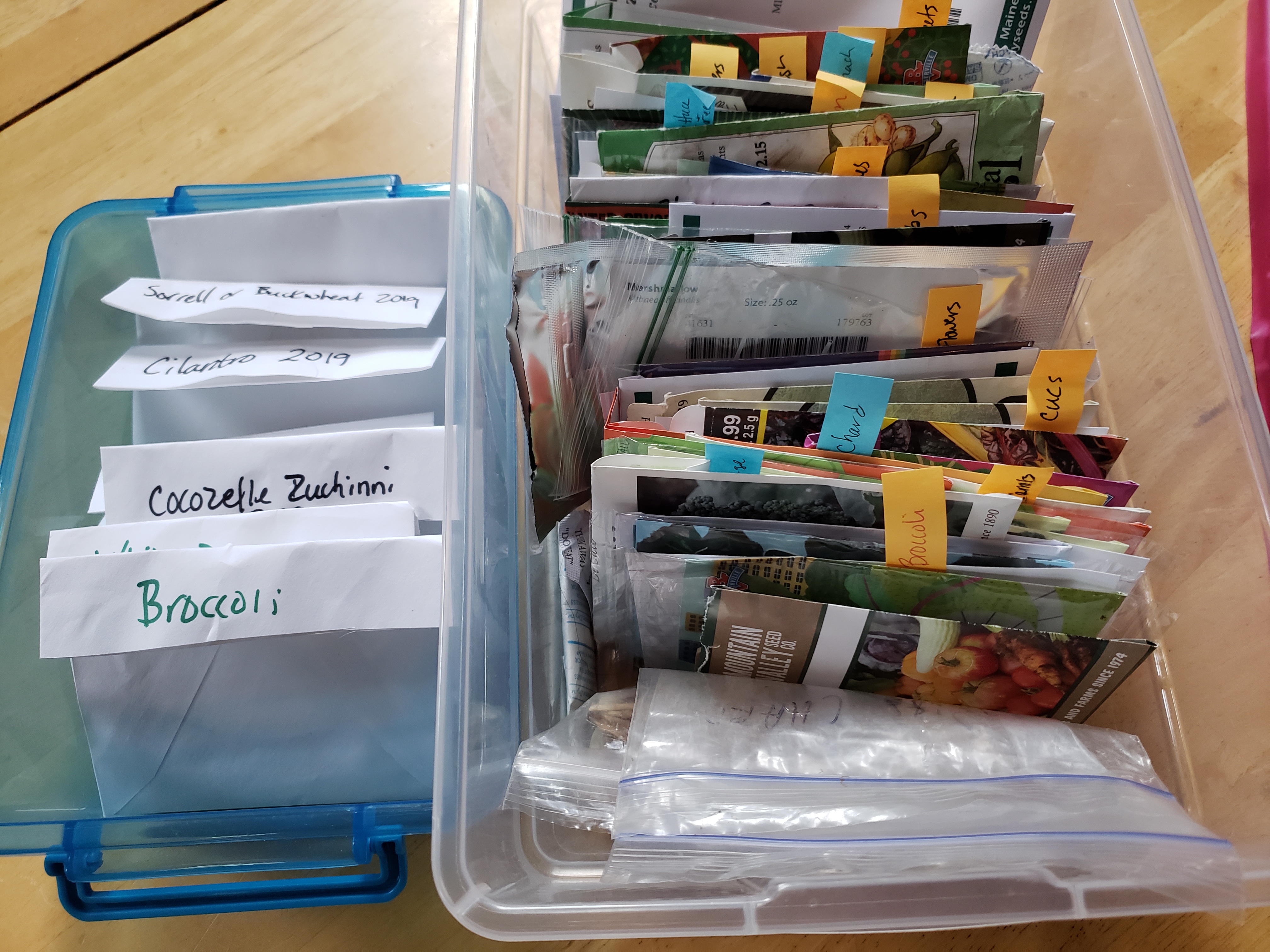 Sometimes I need all the seeds in a packet, carrots for one, but for many others, I need four seeds and the remaining 30 or so seeds go back in the box to lose another year’s vigor.